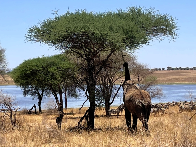 - Sycamore Fig (Ficus sycomorus). Revered since antiquity, this tree bears cherry-sized edible figs, loved by baboons who drop quite a lot of them, thus feeding animals unable to climb trees. It provides dense shade from its evergreen canopy. Its roots, however, can be invasive near buildings.
