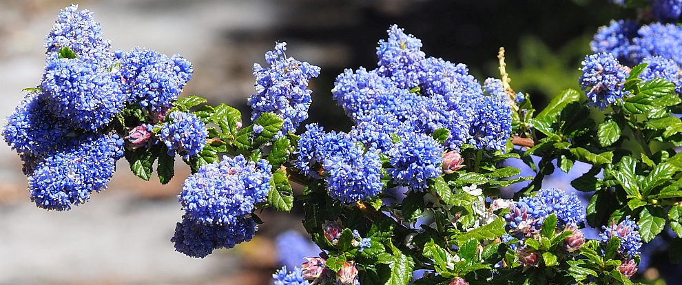 While there are many attractive species and named cultivars of ceanothus, they are also appealing to browsing deer. Because my garden was designed to be a habitat for wildlife, including deer, I have planted only a few small-leaved species of ceanothus that are generally avoided by deer. Mt. Vision wild lilac (Ceanothus gloriosus subsp. porrectus)is a rare and endangered species that produces dark blue flower clusters on low, spreading branches. It has successfully naturalised along one of the deer trails in my garden. Ceanothus species are not generally long-lived, but they grow quickly in gardens and are easily replaced when they begin to decline.