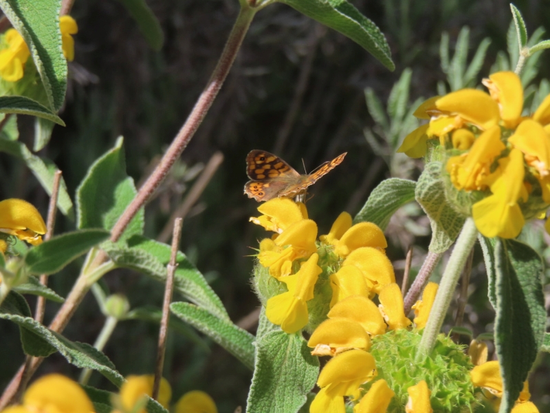 The butterflies also seem to love the Jerusalem sage(Phlomis fruticosa), one of my favourite plants that we introduced about eight years ago, with its unusual orbs of bright yellow flowers. Each year since then it has increased in height and now forms a bush that is also adored by hornets.