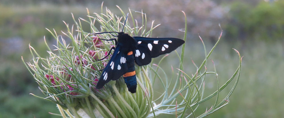The photo at the top of this page shows Daucus carota with Syntomis phegea moth (photo Lesley Dellagana)