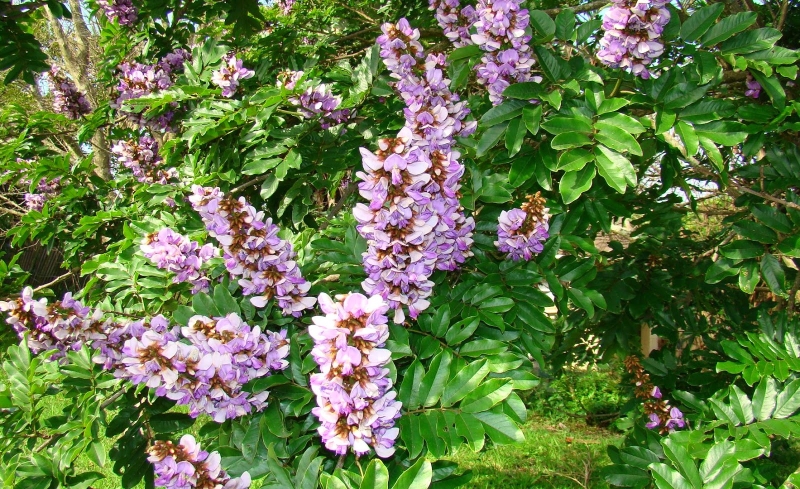 - Umzimbeet (Millettia grandis). A leguminous tree with striking purple flowers and a light canopy. While beautiful, it contains toxic compounds and is best admired from a distance. Suitable for experienced gardeners.