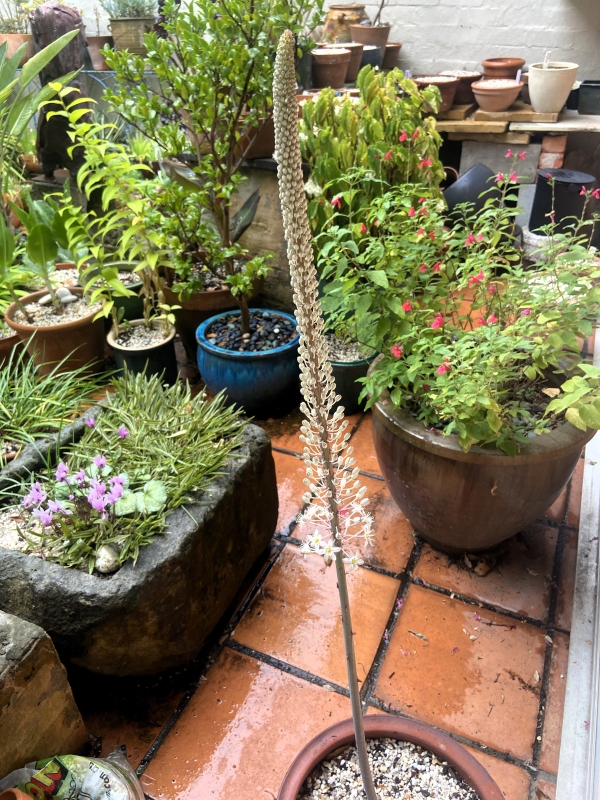 Although it was a hot morning, we all lasted the course and the rain finally arrived that evening. A reason for rejoicing after our long dry summer. I photographed my Drimia maritima this morning, reaching its peak, as the sea squills at Rippon Lea had already finished flowering: a lovely reminder of our fascinating visit.